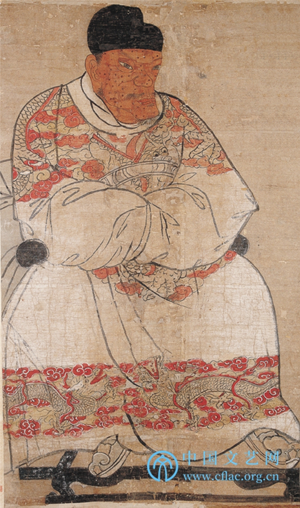 展出的明、清两幅明太祖朱元璋肖像所绘相貌反差极大,这满足了不同时期的社会需要。《明太祖朱元璋异形像》从画风看,为明代作品,朱元璋脸颊变形拉长,下巴向前凸出,脸上不同程度地布满黑痣,“凤眸龙头,黑痣盈面” ,在朱元璋画像中此类异形像并不少见,与正形像形成截然不同的反差。《明太祖朱元璋正形像》为晚清民国时期画家俞明所绘,是朱元璋正形像中较为标准的画像。在传世的朱元璋肖像画中,其异形像都以压倒性多数胜于正形像,主要原因是朱元璋贵为九五之尊,民间往往将其神化,以满足民众对皇帝的神秘心理,再加上朱元璋本人对其异形像推波助澜,因此其异形像大行其道。
