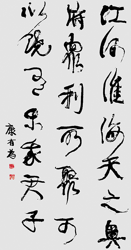 虽然历代书法随着时代的变迁,已逐渐从魏晋以前的多样繁复演绎成通用性更强的简捷、方便、自然的状态,同时书写的规范化带出了文字发展的稳定期,最易上手体现人的情感状态的行、楷、草书畅行于世,让心性随笔而落,形影随墨而化,并与当代书法形成了高度通联,但是在审美品格的认识上,由于时代的不匀衡发展所带来不同文化的认识观,直接影响着各个不同时代的不同看待与思考,并在不同的社会认同度中,让书写与书法的内在含义及表现目的出现了观念上的差异,造成当今的争论焦点——如何把握对艺术性的认可时,形成有效明确的衡量标准。在如何坚守传统与开放新格局的问题探讨时,人们却又不能排斥掉书写这一基础性的运用功能,以至只能以兼顾的方式去求得书写性与书法美间的协同发展。而一批富有见解的学者还是在自有的解释中,希望将重形意与笔墨表现的书法艺术以独立的风貌出现,这样才能将书法塑造成为独立的艺术门类,而不仅仅是作为工具的运用。