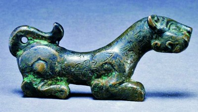 商代伏鸟双尾青铜虎 江西省博物馆藏