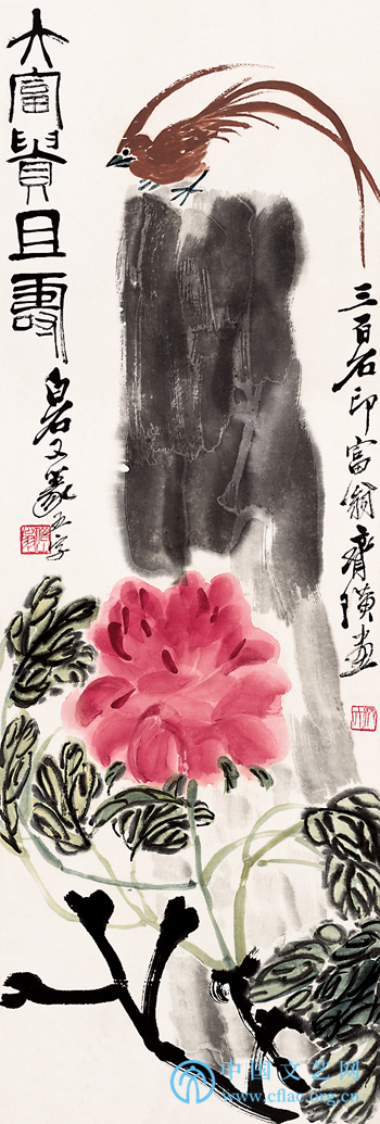 “画者工之余”,即绘画应为做工休息之余而作。“诗者睡之余”借用齐白石自己的话语“绝句诗,可枕上作也”,可以理解为作诗不需要刻意为之,而是在睡觉之余妙手偶得之。“寿者劫之余”是齐白石深刻的人生感悟,“劫”是指丁巳年(1917年)齐白石幽居湖南乡下期间,由于兵燹匪乱导致平静的生活被打乱,不但多年经营的家园被洗劫一空,自己也只能远离家乡故土,只身北上京城漂泊。由此可见,齐白石并没有将写诗、作画视作难事,而是作为忙碌生活中的一种情绪调节和放松方式。正是这种轻松心态,使得他更加合理地利用时间,创作出大量精彩的画作和诗文。而在面对人生的劫难和低谷时,齐白石保持着一份平和安宁、积极乐观的心态,不但人生得享高寿,艺术上也终获大成。