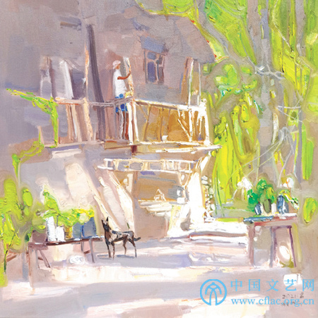 勇者作画在于破,他常常爱说:突破点在哪里?规则是什么?规则就是前人实践总结出来的经验,我们要创新,就是要打破规则。每个民族都有自己的文化传统,所以都有自己的规则,不能只谈继承,更要强调对未来的创造,只有创造新的艺术和文化才会受到世人的尊敬,那么我们就从“破”规则切入,要从“完美”之处作为切入点。大的“破”,我们还不敢奢望,但我们可以在夹缝中“破”。所谓的“冷暖”规则、“构图”规则,都是在他的前行路上需要打破的,构图比例,拉大、再拉大,四六开、三七开、二八开、一九开;冷暖对比,光源是暖色,那么背光就一定是冷色,反之,光源是冷色,背光就一定是暖色,他说这是光学原理,是认识色彩的基础,这是科学分析,而绘画是感性的,是情绪化的。这就是需要“破”的,所以他的画面会出现冷光源冷背光,热光源暖背光;阳光普照的同时又没投影,让你感到别致、大胆、奇特。