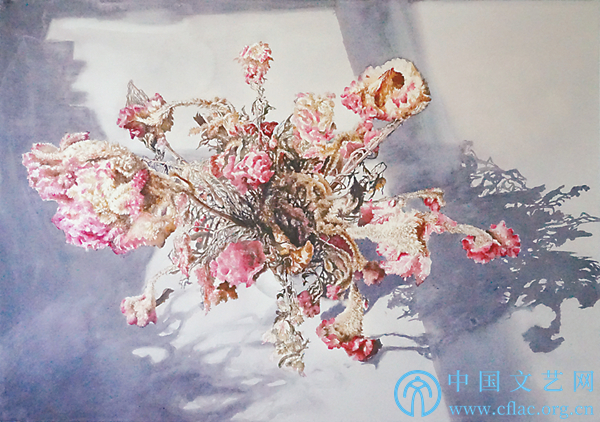 沈向红画得最多的还是鸡冠花。那是一种极其普通的草花。“在冷冽的秋风里,在万物枯萎的季节里,她昂首挺胸,骄傲地展示着那一抹艳丽的红,如一个英勇的战士,即使大雪压弯了枝干,依然保持着那抹红,甚至连叶子也变成了红色。我总觉得鸡冠花是秋日里最美最艳最红最独立的一道风景。”她曾作诗云:“鸡冠花/茂密的树冠把阳光撕裂/斑驳的碎片/从枝叶间落下/鸡冠花挣脱了叶的束缚/满面通红/风越过围墙/从海上吹来/一丝秋的意思……”