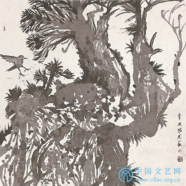 一如中国人民大学教授汪为胜所言,如果说阳光前几个阶段的山水画还带有桂林特性、漓江形象的画面色彩,那么在“变法”之后,以桂林古树为主题的系列作品《古树系列》就开始更偏重于笔墨的意象造型及其视觉图式的关注。