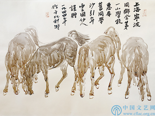 比利时发现沙耆画作《四马图》,系他一九四四年为上海宁波同乡会第一小学所作。