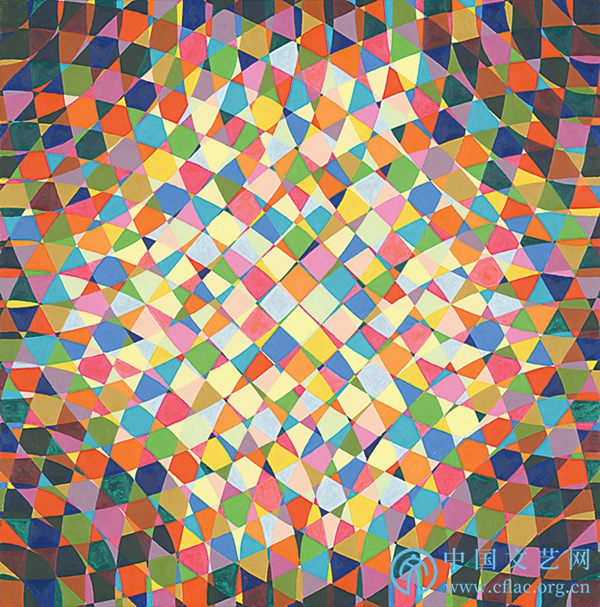 奥普艺术的主要特征是以色彩的呼应和几何编码产生变化,结合知觉心理学的幻觉效应,通过颤动、重叠、变形、对比、错位、动感和透视等一系列抽象的语法,刺激观看者的视觉神经,实现从视觉观看到知觉心理层面的审美体验。在中国抽象艺术领域,从事此类创作的艺术家并不多,张立珩的艺术探索为艺术界提供了研究和讨论奥普艺术的契机。