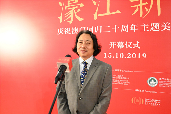 2019年是澳门回归祖国20周年,为展现澳门回归以来取得的巨大成就,表达中华儿女爱国爱澳之情,由中华人民共和国文化和旅游部、中央人民政府驻澳门特别行政区联络办公室、澳门特别行政区政府社会文化司共同指导,中国国家画院和澳门美术家协会共同主办的“濠江新韵——庆祝澳门回归二十周年主题美术作品展”于10月15日上午在澳门旅游塔开幕。本次主题创作共邀请35位内地画家、3位香港画家和10位澳门画家先后两次深入澳门采风交流,精心创作了100余件反映澳门人文风情、自然风貌和社会发展的作品,特别是推出了一批反映澳门回归以来取得的新成就和澳门同胞生活新风貌的优秀作品,受到澳门观众的热烈好评,拉开了内地庆祝澳门回归20周年美术展览序幕。