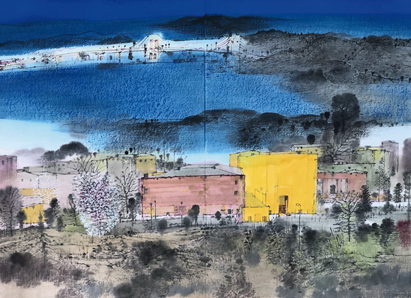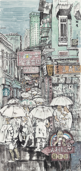 卢禹舜 澳门风情1 纸本设色 35cm×52cm 2019年