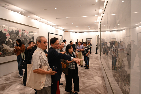 文化和旅游部副部长张旭,澳门特区政府社会文化司司长谭俊荣,中央政府驻澳门联络办秘书长王新东,外交部驻澳门特派员公署特派员沈蓓莉,澳门特区政府文化局局长穆欣欣,世界旅游经济论坛副主席兼秘书长何超琼,中国国家画院艺术委员会秘书长刘建,澳门美术家协会主席、澳门美术协会监事长黎鹰,澳门美术家协会副主席陆曦等出席开幕式。