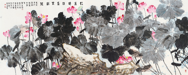 贾广健、姚大伍、郭子良、乔宜男合作 红莲映日盛世和风 国画 145cm×367cm 2019年