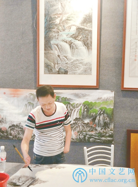 叶善华和他的多个学生都参加了这次桂林新文艺群体中国画作品展,他们的经历相似:山里走出,家境不好,没什么学历,想在市区谋个更好的生活。从1997年至今,叶善华一直从事中国画学习与创作,十余年从未间断。他在桂林跟随文新军、黎东明、张贤等多位老师学习,后来去北京,求教于全国一线名家。最初作品卖不出去,文新军就免费教他画了三年,还资助他的生活。叶善华说:“桂林和很多地方不同,有画家生存的土壤。从业的20多年里,我经历过迷茫和彷徨,也享受过在各种美术作品展览里不断入选获奖带来的荣誉和喜悦,今天不断的学习和创作已成为我生活中不可或缺的一部分。”