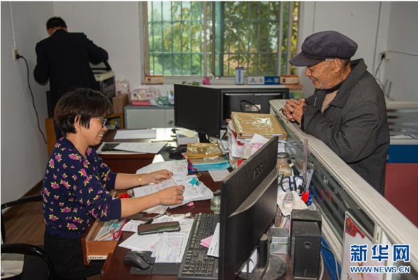 11月17日,大陈村村民在大陈村便民服务中心咨询社保相关信息。新华社发(江汉 摄)