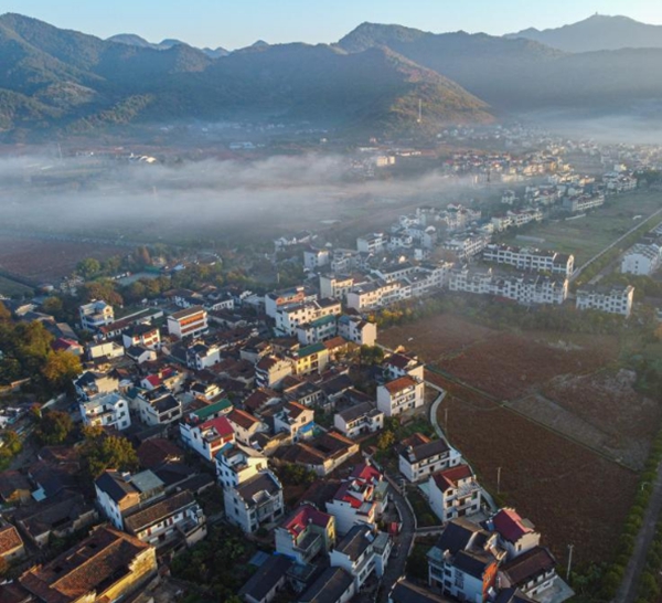 这是11月18日拍摄的沐浴在晨光中的大陈村(无人机照片)。新华社发(江汉 摄)