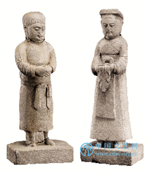 石雕契丹男、女侍俑