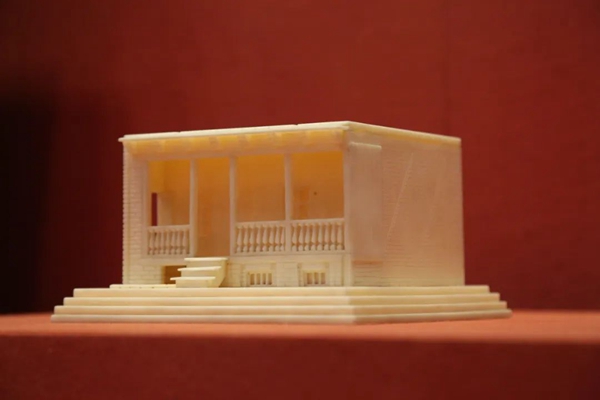 1949年12月至1950年2月,毛泽东同志访问苏联,这是新中国领导人首次出国访问,两国正式签订《中苏友好同盟互助条约》,它将中苏友好关系用条约的形式固定了下来,这对于巩固新生的人民政权,迅速恢复经济和展开大规模经济建设,都起到了重要作用。这是苏联人民赠送给毛泽东同志的仿牙雕斯大林故居模型。
