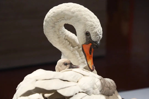 这件瓷塑天鹅是中美关系“破冰”的重要见证。1972年2月,美国总统尼克松访华,两国在上海发表《中美联合公报》,标志着中美关系正常化进程的开始。在人民大会堂,中美双方互赠礼品,尼克松总统亲自介绍这件赠送毛泽东同志的瓷塑天鹅。他说天鹅象征着对于和平、友善的祈盼,希望它给美中两国关系发展带来好征兆。这件礼品是美国著名生物学家和硬制瓷烧制大师波姆晚年的杰作,塑形、雕刻、色彩、意蕴完美结合,既是珍贵的历史见证,又是难得的艺术佳作。