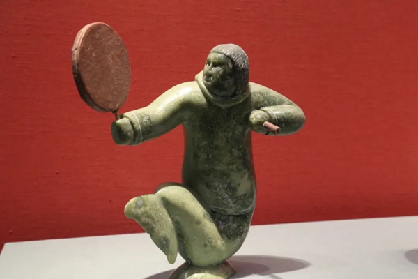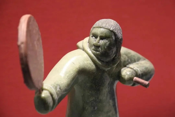 1997年11月,江泽民同志应邀访问加拿大,两国领导人同意建立跨世纪全面合作伙伴关系。加拿大总督罗密欧·勒布朗赠送江泽民同志碧玉雕因纽特击鼓者。
