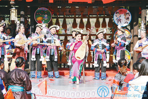 乌兰图雅与三江侗族自治县八江镇文艺队表演《点赞新时代》 宫剑南 摄