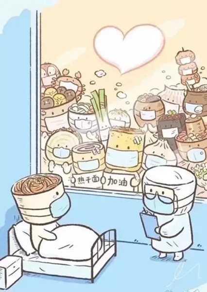 在武汉新冠肺炎疫情最严重的时候,文艺工作者们通过沙画的形式以艺战“疫”,为“热干面”加油!