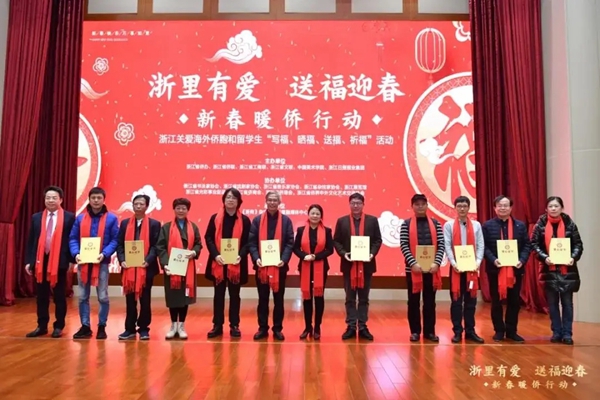 赵雁君在致辞中表示,此次“写福、晒福、送福、祈福”活动,前期已组织30多位知名书法家创作福字,由社会各界慈善人士爱心认领,所得款项将用于慰问海外浙籍侨胞和留学生,今天,还有20位书法家来到现场挥毫泼墨。希望通过这一个个福字的传送,表达浙江书法家的祝福,将“中国福”成为“世界福”。