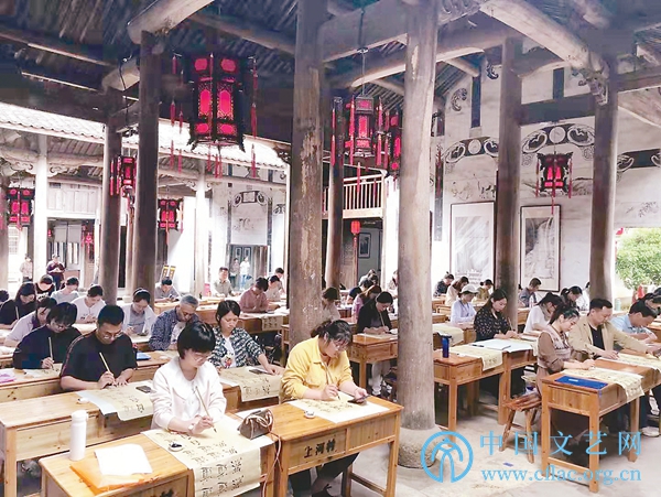 方汶:是的。在让乡村“乐”起来方面,我们经常开展文艺下乡活动,比如组织浦江县书协、美协、诗书画协会等协会会员骨干,深入乡镇开展“文艺助力乡村振兴书画名家走进农村”系列采风活动,用文艺的形式展现新农村建设成果,帮扶农村文化建设、丰富群众文化生活、提高群众文化生活品质。我们也努力搭建文艺平台,激发乡村活力:利用农村文化礼堂文艺阵地,开展群众性文化活动,这不仅让广大群众享受丰富的文艺盛宴,更能使农村文艺焕发出新的活力;利用月泉书院常年举办文化惠民活动,提供文艺培训,美化民众心灵,陶冶民众情感,还提升了村民的综合素养,让每一位村民都能树立自信,在田间地头唱起来,在村里村外舞起来,从文化艺术的陶冶中让老百姓感到精神上的快乐和富足,从而提高生活品质。