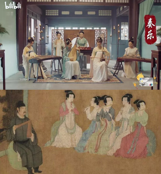 “秋节佳人图”之“珠玉罗盘图”借鉴南唐顾闳中《韩熙载夜宴图》
