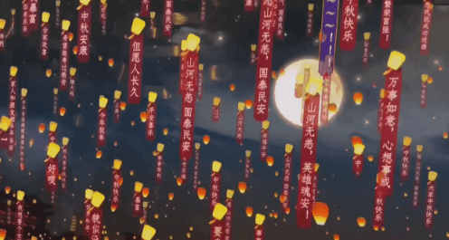 节目尾声画面转换,“风花雪月”中原本振臂高呼的将士们成了女主角“筱筱”笔下的水墨画。她收起笔,走出房门,放飞天灯。B站进行特别设计,尾声处网友发送的每一条许愿弹幕,都会变成一盏盏缓缓上升的祈福天灯。屏幕成为一方许愿小天地,网友的弹幕化成天灯,漫天飘飞。许多观众不约而同地刷着“山河无恙,国泰民安”,这是这个中秋,年轻一代对国家、民族献上的最诚挚、最特别的祝福。在此,小艺也祝福祖国“山河无恙,国泰民安!”