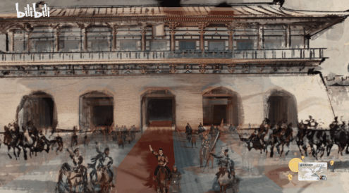 “花车斗彩”中,民乐和鸣,羯鼓声隆,两辆花车,一是中原风格,一是西域风格,朱雀门前相遇,歌舞比拼,展开斗彩。中原歌者演唱的曲目《把酒问月》,是敦煌莫高窟的二创作品。作品前奏来自莫高窟壁画上的原谱,前奏之外的部分由马久越根据考古学家、音乐学家从敦煌壁画上翻译的25份残谱改编而成。西域风花车上的舞娘旋转蹬踏,身姿曼妙,跳的是西域胡旋舞。歌者与舞者各有千秋,胜负难分。而在“秋节佳人图 ”中,当一群汉服女子练习舞蹈时,一西域服饰女子倏然而来,加入其中,与她们融为了一体。古风与胡风PK,汉女与胡女共舞,展现的不正是中华文化开放包容、兼容并蓄的特质?