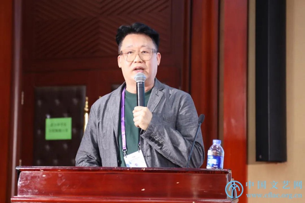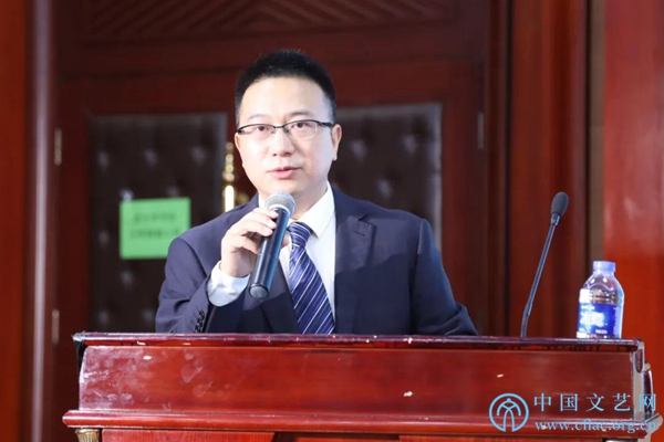 9月27日,“第12届海峡两岸暨港澳地区艺术论坛”在北京开幕。图为中国石油文联副秘书长张俊东发言。