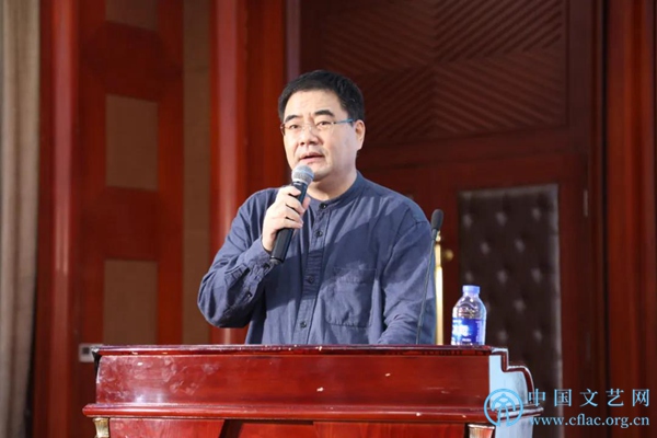9月27日,“第12届海峡两岸暨港澳地区艺术论坛”在北京开幕。图为北京市文联党组成员、副主席刚杰发言。