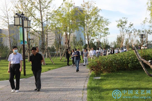 9月27日,“第12届海峡两岸暨港澳地区艺术论坛”在北京开幕。图为与会嘉宾来到大运河非遗文化园区参观调研。