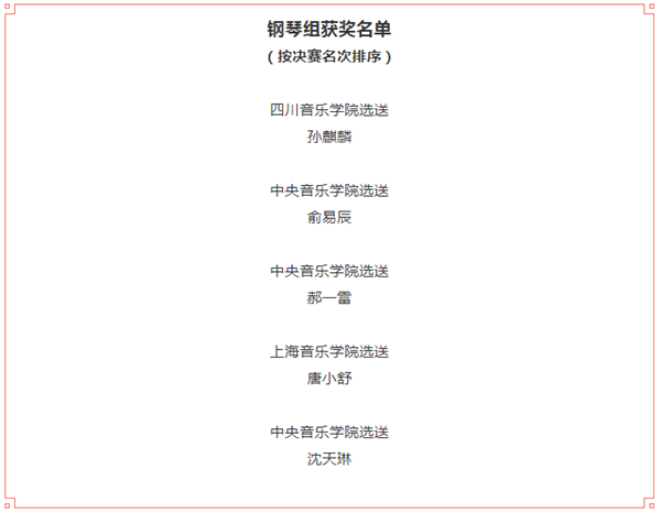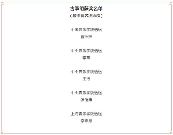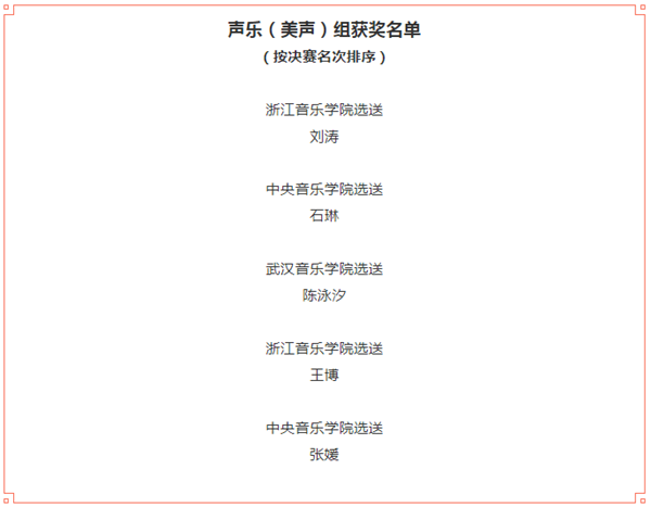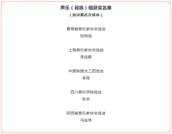 经过8天的复赛、半决赛、决赛,第十三届中国音乐金钟奖钢琴、古筝、声乐(美声)、声乐(民族)4大奖项,10月24日晚全部揭晓。