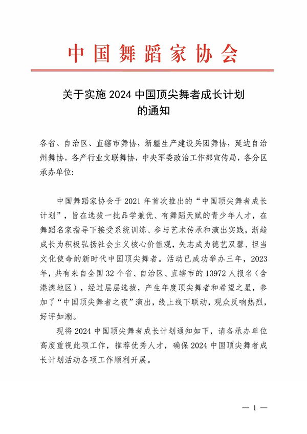中国舞蹈家协会发布关于实施2024中国顶尖舞者成长计划的通知