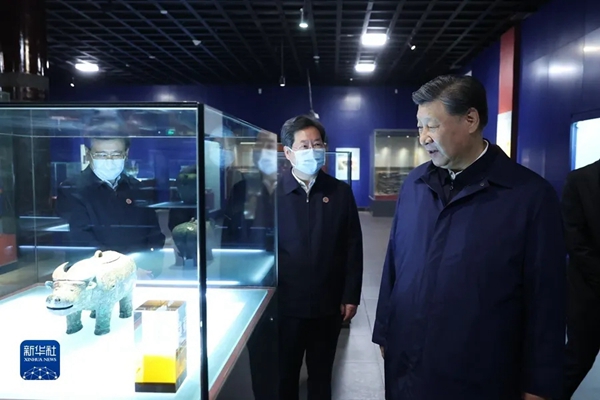 2022年10月28日下午,习近平在安阳市殷墟博物馆考察。新华社记者 鞠鹏 摄