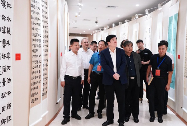 夏斐致辞表示,此次书法联展通过“结对子”的形式,搭建了一个跨地域的文化交流平台,三省书家把新中国成立以来所取得的辉煌成就,化作笔端的浓情厚意,作品形式多样、格调高雅,展示了新时代书法艺术工作者培根铸魂、守正出新的艺术追求和为时代立传、为时代画像、为时代明德的文化担当。海南省文联将以这次联展为契机,深入挖掘海南独特的红色文化、海洋文化、生态文化、黎苗文化、华侨文化、东坡文化等文化资源,希望书家抓住历史机遇,努力创作出更多具有时代特色的精品力作。