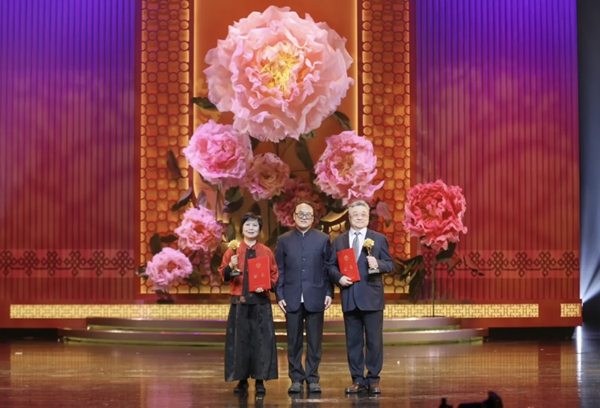 南通籍体操奥运冠军、世界冠军黄旭;全国教书育人楷模,坚守教学一线67载的中学教师李庾南;国家科技进步一等奖获得者、南通通富微电董事长总裁石磊;第八届全国道德模范提名奖获得者、中国好人沈亚秋为第十三届中国曲艺牡丹奖新人奖、节目奖获奖代表颁奖。摄影:王津