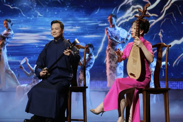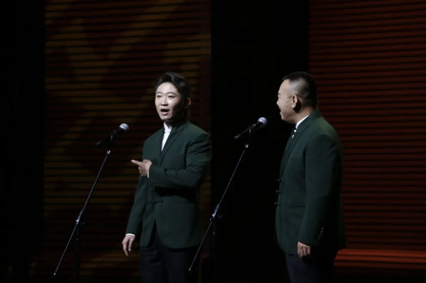 颁奖晚会由中央广播电视总台主持人张泽群、张蕾,相声表演艺术家李伟建,江苏省广播电视总台主持人聂琪联袂主持,分为上篇“向祖国报告”和下篇“为时代喝彩”两个篇章。晚会创意频现,集南北曲艺精华,多维度展现我国丰富多彩、历久弥新的曲艺艺术。曲艺音画《曲“韵”悠长》编排精妙,由表演艺术家王刚作为评书串讲人,带领观众一起回眸那些曲韵悠长的名家经典,李菁、曾恋、王超、熊竹英等带来快板《奇袭白虎团》、四川清音《布谷鸟咕咕叫》、山东快书《武松打虎》、陕北说书《黄风起兮》片断,糅合曲艺大家视频和口技表演,向经典致敬,展现中华曲艺的博大精深和底蕴风采;曲艺音画《曲“星”争辉》大秀绝技,陈靓、王舜、张丽静带来的上海说唱《金陵塔》、二人台呱嘴《顶灯》、西河大鼓《玲珑塔》贯口表演酣畅痛快,许艳艳、林晓东、纪鸣亮、时唯展示的南音四宝《百鸟朝凤》、四川金钱板、陕西快板、梅花大鼓等拿手绝活则令人目不暇接。知名演员、歌手等倾情参演,为这场视听盛宴更添星光熠熠。著名演员韩雪、梁天作为开奖嘉宾,分别宣读获奖名单,韩雪献唱歌曲《前门情思大碗茶》,蔡国庆演唱《牡丹花开向未来》,唱出对曲艺艺术繁荣发展的美好祝愿。在央视少儿频道主持人鞠萍串联的曲艺音画 《曲“苑”艺美》中,陈胜利、郑健、张春丰等表演的河南坠子《司马光砸缸》和二人转《小拜年》以老带小、师带徒的表演形式生动彰显传统艺术的薪火相传与勃勃生机。融汇江苏的文化底蕴及南通的地域特色,盛小云、吴伟东表演评弹《南通赞》,吴侬软语中融梅庵古琴、童谣、吊环杂技于一体。为大众喜闻乐见的相声、小品更是看点十足,冯巩、贾旭明、赵海燕、金霏、陈曦等带来的相声《我爱诗词2》《运动生活》,小品《敢问路在何方》幽默诙谐、妙趣横生,让现场爆发出阵阵掌声笑声。整场演出精彩纷呈、气氛热烈,高潮迭起。