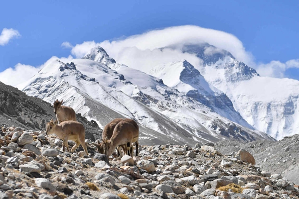 Animals live wild on the slopes of Qomolangma. Work carried out on the mountain this year by Chinese team members will help protect the environment. JIGME DORJE/XINHUA