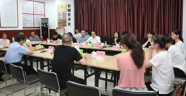 中国戏剧家协会近日专门到浙江婺剧院(以下简称“浙婺”)展开调研活动。调研组参观了浙婺的剧场和排练厅、办公环境和婺剧艺术博物馆等配套设施,深入了解婺剧及浙婺的历史和发展现状。在不同的练功场、包括走廊及舞台上,随处可见青年演员正在进行认真刻苦的基本功训练,从武戏的毯子功、把子功等,到文戏的说戏、排练,心无旁骛、一丝不苟,无不体现整个团队青春洋溢的蓬勃朝气和文明向上的精神风貌。在座谈会上,浙婺党总支书记、院长王晓平,党总支副书记严立新,婺剧领军人物、“二度梅”获得者陈美兰先后分享了推广及发展婺剧艺术、培养优秀青年演员以及院团改革管理方面的经验与思考。以第27届“梅花奖”获得者杨霞云、第30届“梅花奖”获得者楼胜为代表的一批青年演员,也分享了个人成长的甘苦经历以及与团体之间水乳交融的互生共融关系。