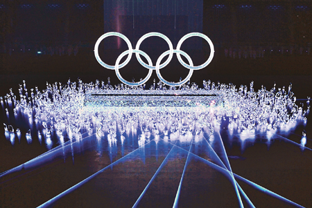 烛龙栖京华,光耀犹旦开。燕山雪花大如席,片片吹落轩辕台。北京冬奥会开幕式使用90余朵雪花代表91个国家和地区,湛静淡雅的雪花被引导员赋予体温,以爱心队形迎接着奥运火炬的到来。来自世界各地的“雪花”汇聚在北京,团团如盖,灼灼其华,在不同中寻找相同,在竞争中寻求对话,共同打造人类命运共同体。2022北京冬奥会不仅是世界认识中国的一扇窗,更是世界文明与中华文明交流的一扇窗。