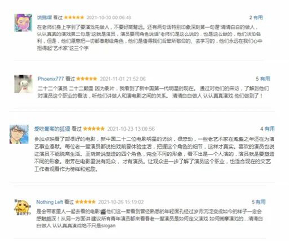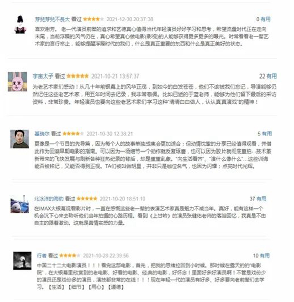 《演员》的上映对于文娱圈来说无疑是一股春风,老一代文艺工作者用自己的坚持与坚守为现在的文艺工作者们照亮了方向,希望老戏骨、老艺术家的精神春风化雨般滋润年青一代,引导他们变得越来越好。
