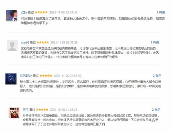 被影片所触动,观众们纷纷表达了自己对老艺术家的尊敬,以及对现在文艺工作者的期待。