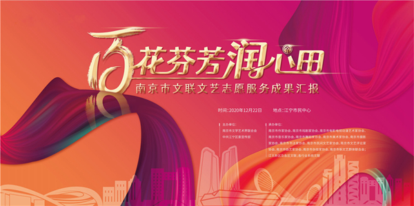 12月22日,由南京市文联、中共江宁区委宣传部共同主办的“百花芬芳润心田”文艺志愿服务成果汇报活动在江宁市民中心举办。中共南京市委宣传部常务副部长纪增龙为南京市文联授旗——文艺志愿永远在路上。南京市文联党组书记、常务副主席任家龙同志带领志愿者们共同宣读了《文艺志愿者倡议书》。江苏省文联书记处书记、副主席王建,南京市文联党组成员、副主席张俊、濮存周、李志平,江宁区人民政府副区长伏进进,及省文联文艺志愿中心、市各文艺家协会、各区和江北新区文联、行业系统文联代表,文艺志愿者等260余人出席活动。