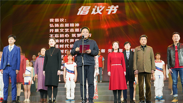 南京市文联党组书记、常务副主席任家龙同志带领志愿者们共同宣读了《文艺志愿者倡议书》
