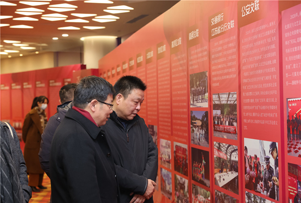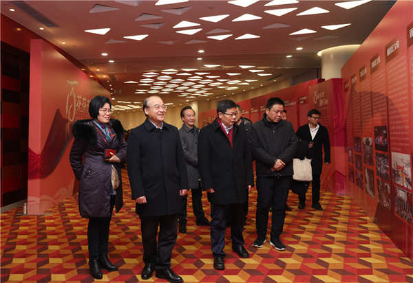 南京市委宣传部常务副部长纪增龙、江苏省文联书记处书记、副主席王建等领导参观市文联系统志愿服务成果展板