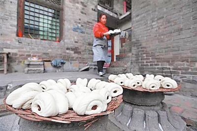 给自己家里每个人蒸一个“人口礼馍”,其中一个里边放个“制钱”,其余放上一个红枣。初七人日,谁拿到放“制钱”的口礼馍,谁运气就是最好的,福气也是最大的,大事小事都会成为家里的靠山。