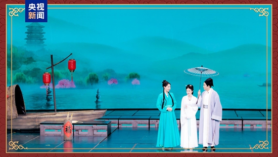 小品《借伞》围绕《白蛇传》中“断桥借伞”的经典桥段,巧妙串联京剧、粤剧、川剧、越剧四个剧种,在一连串不期而遇的“误会”中拉满喜剧效果,也为观众送上“天下有情人终成眷属”的美好祝福。