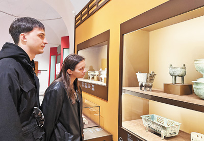 5月5日,俄罗斯观众在莫斯科参观“食味中华——中华古代饮食文化展”。人民日报记者 白紫微摄