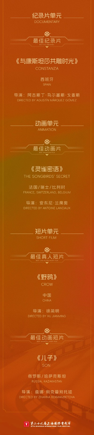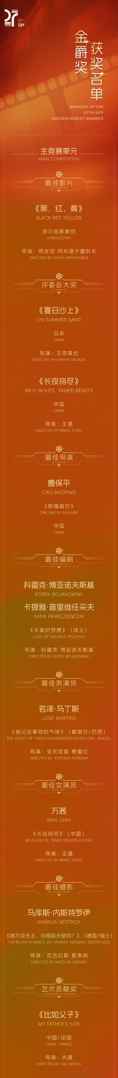 (原标题:第二十七届上海国际电影节金爵奖获奖名单)