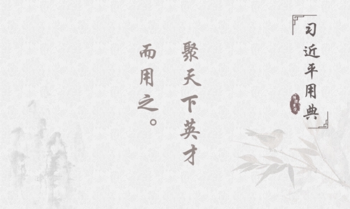 早在正定期间,为把当地经济搞上去,习近平就果敢推出了震动全国的“人才九条”,面向全国招贤纳士,为正定发展破局开路。党的十八大以来,习近平总书记从执政兴国的高度,多次对人才强国作出重要论述,强调指出:“当今世界聚才、用才,应该包括国际国内两个方面的人才,也就是择天下英才而用之”。在党的十九大报告中,他再次强调“聚天下英才而用之,加快建设人才强国”,号召“把党内和党外、国内和国外各方面优秀人才聚集到党和人民的伟大奋斗中来”。