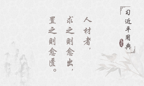 在2013年全国组织工作会议讲话中,习近平总书记强调指出:“用人得当,就要科学合理使用干部,也就是说要用当其时、用其所长。”并引用顾嗣协的《杂兴》诗说:“用什么人、用在什么岗位,一定要从工作需要出发,以事择人,不能简单把职位作为奖励干部的手段。”他号召要树立强烈的人才意识,寻觅人才求贤若渴,发现人才如获至宝,举荐人才不拘一格,使用人才各尽其能。只有这样,才能使大批好干部源源不断涌现出来,才能使大家的聪明才智充分释放出来。